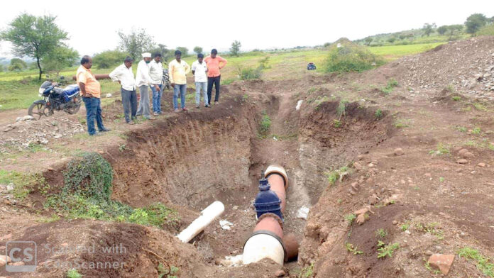 आंवढी,लोहगावला पाणी जाणाऱ्या पाईपलाईनचे काम सुरू आहे.