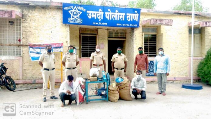 उमदी पोलीस स्टेशन हद्दीत उमदी ते सलगरकडे जाणाऱ्या डांबरी रोडलगत सुमारे 2 किमी अंतरावर दक्षिणेस असलेले पत्रा शेडमध्ये बेकायदेशीररीत्या सुपारी तंबाखू व चुना यांचा वापर करून मशीनद्वारे मावा बनविला जात होता.