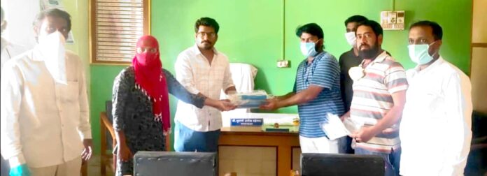 जत,प्रतिनिधी ; जत येथील कै.अरूणआण्णा शिंदे स्पोर्टस् क्लब जत चे वतिने जत नगरपरिषदेच्या कर्मचाऱ्यांना फेस शिल्डचे वाटप करणेत आले. त्यावेळी स्पोर्टस् क्लब जतचे अध्यक्ष सनी महाजन,विनय अय्यंगार व सुजय शिंदे उपस्थित होते.