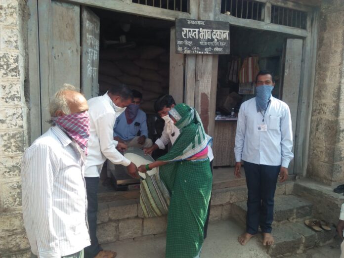 सध्या कोरोना लॉकडाऊन काळात नागरिकांना शासनाने दिलेले स्वस्त धान्य व्यवस्थित दिले जावेत,नोंदणी असलेला कोणताही नागरिक या योजनापासून वंचित राहू नये यांची काळजी द्यावी,अशा सुचना स्वस्तधान्य दुकानदारांना संरपच पाटील यांनी दिली.यावेळी काही कार्डधारकांना धान्य वाटपही केले.