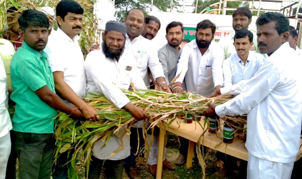 रासपच्या वृधापन दिनानिमित्त जनावरांना चारा वाटप करताना तहसीलदार सचिन पाटील व मान्यवर