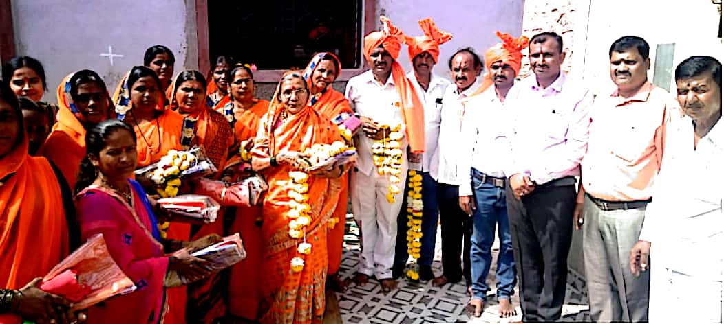 आंवढी,वार्ताहर:आंवढी(ता.जत)येथील दारूबंदी केलेल्या महिलांचा सोनंद ता.सांगोला येथे अँड.समाधान काशीद यांचे वडील स्व.बाबासाहेब काशीद यांच्या पुण्यस्मरणानिमित्त भव्य सत्कार करण्यात आला.या महिलांनी सहा महिने संघर्ष करत दारुमुळे घरे कशी उद्ध्वस्त होतात हे घरोघरी जात पटवून देत आंवढी सारख्या मोठ्या गावात दारूबंदी करण्याचे काम केले आहे.त्यांचा गौरव अँड. समाधान शिंदे यांनी सोनंद येथे केला.आदर्श निर्माण केलेले आंवढी हे महाराष्ट्रातील सातवे गाव आहे.दारूबंदीचे शिवधनुष्य उचललेल्या या रणरागिणीचा साडी,फेटा, श्रीफळ,पुष्पगुच्छ देऊन माजी ग्रामपंचायत सदस्य निलावती काशीद,शालन भोसले,जयश्री काशीद यांच्या हस्ते सत्कार करण्यात आला. तसेच यासर्व प्रक्रियेत महत्त्वपूर्ण भूमिका बजावणारे सरपंच अण्णासाहेब कोडग यांचा सोलापूर जिल्हा कॉंग्रेसचे उपाध्यक्ष ज्ञानेश्वर कोळसे पाटील यांच्या हस्ते, उपसरपंच अाण्णासाहेब बाबर यांचा सत्कार सोनंचे संरपच समाधान पाटील,पोलीस पाटील डॉ.आण्णासाहेब कोडक यांचा माजी सरपंच मुरलीधर काशीद यांच्या हस्ते सत्कार करण्यात आला.यावेळी अँड.बंडू काशीद,रुपेश शिंदे,मयुर मोरे,प्रकाश काशीद,मुकेश काशीद,डॉ.महादेव गायकवाड,केशव बाबर आदी मान्यवर उपस्थित होते.