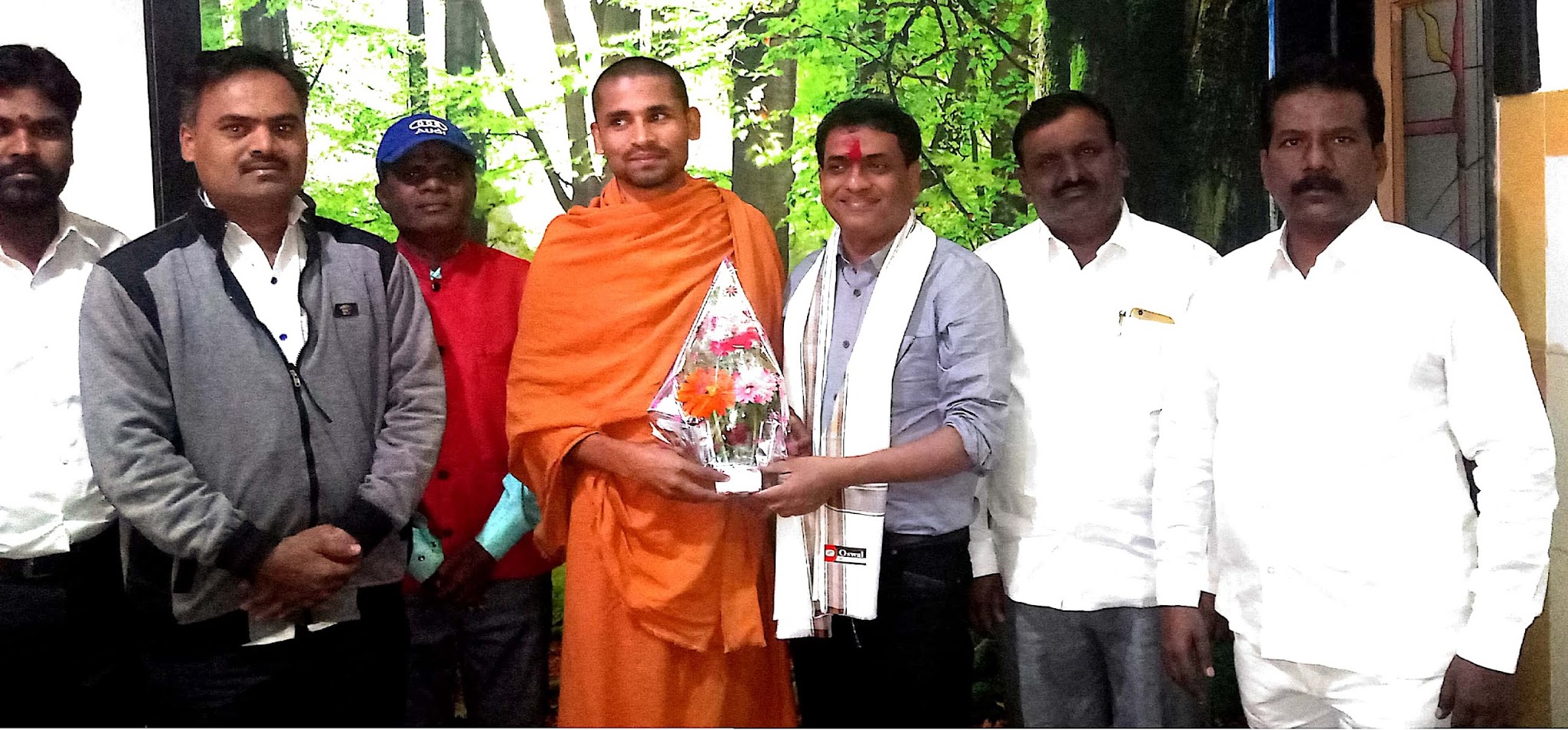 जत:डॉ.रविंद्र आरळी यांना वाढदिवसानिमित्त शुभेच्छा देताना बालगाव आश्रमाचे अमृत्तानंद स्वामीजी,संपादक दिनराज वाघमारे,राजू माळी,चंद्रकांत गुड्डोडगी,अँड.गडदे