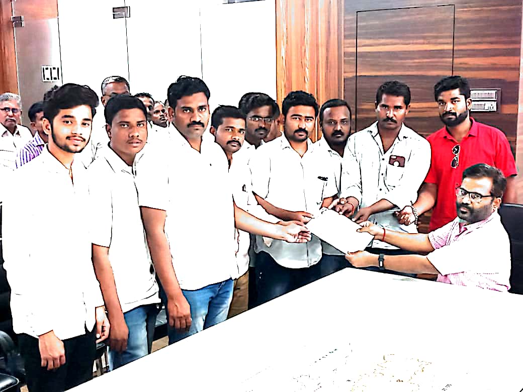 जत तालुक्यात तातडीने चारा छावण्या,टँकर सुरू करावेत या मागणीचे निवेदन देताना युवक कॉग्रेसचे कार्यकर्ते