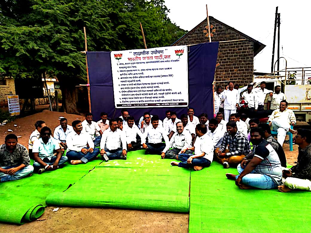 जत येथे तहसीलदार कार्यालयासमोर उपोषणास बसलेले आ. विलासराव जगताप,प्रकाश जमदाडे,डाॅ. रविंद्र आरळी व भाजपचे पदाधिकारी