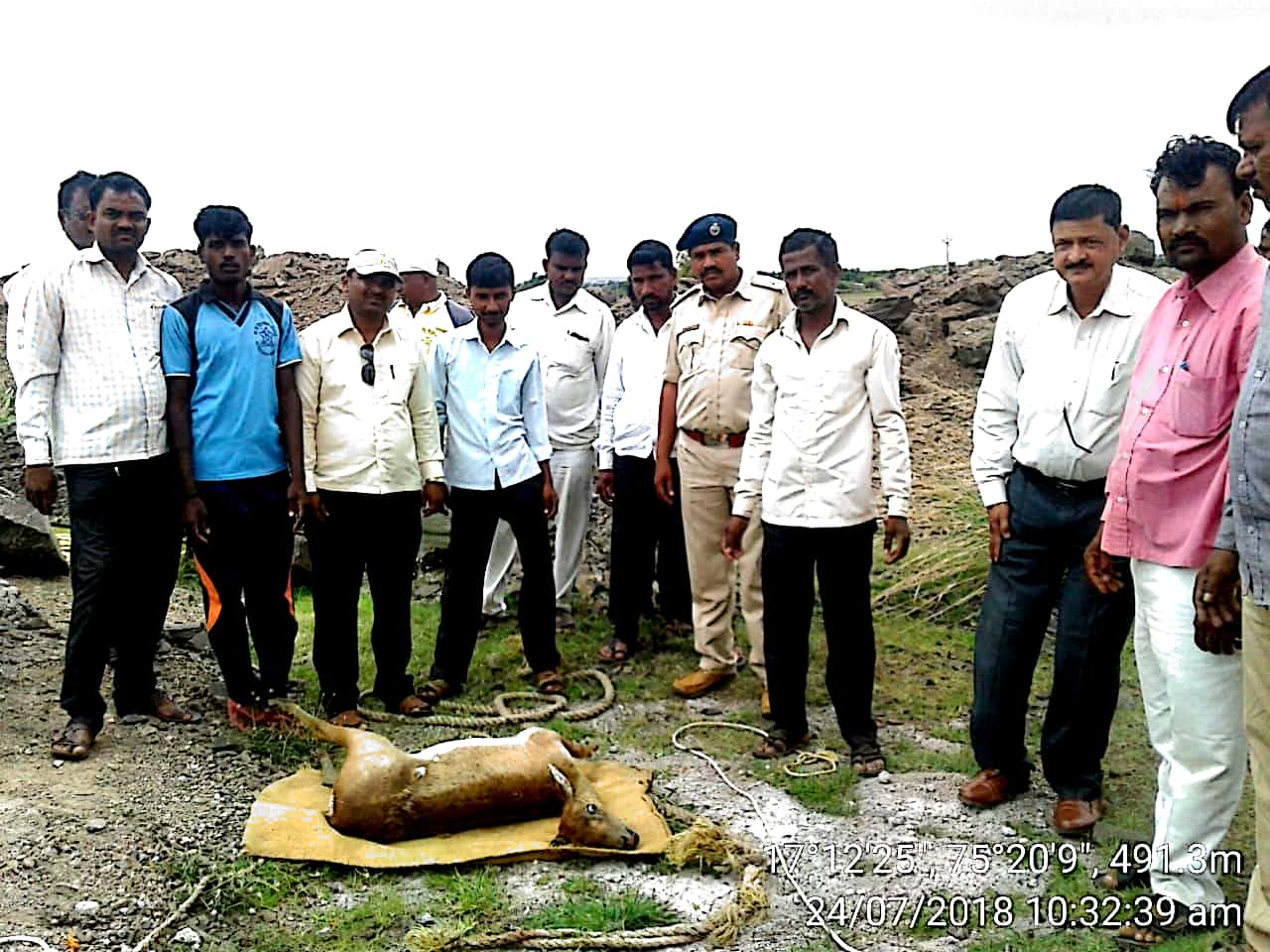 खैराव (ता.जत)येथील विहिरीत पडून मृत्यू झालेल्या काळविटांचा पंचनामा करण्यात आला.वनक्षेत्रपाल हरिबा मोहिते व ग्रामस्थ उपस्थित होते