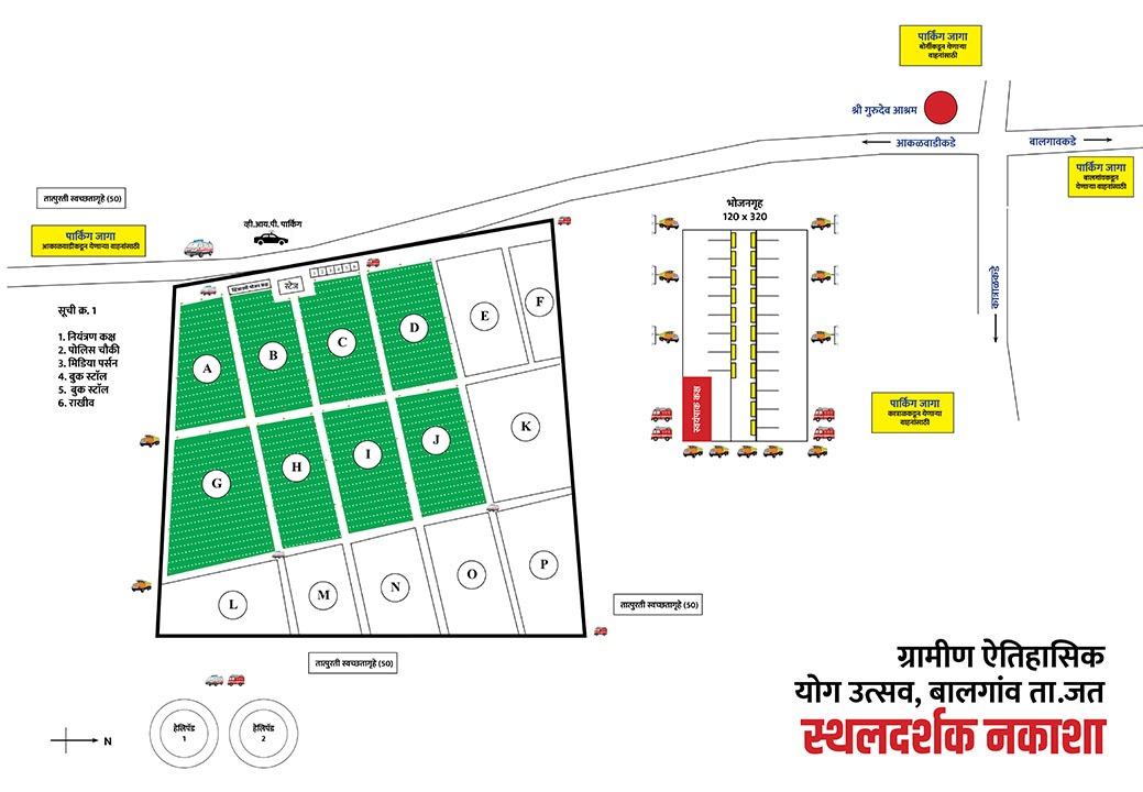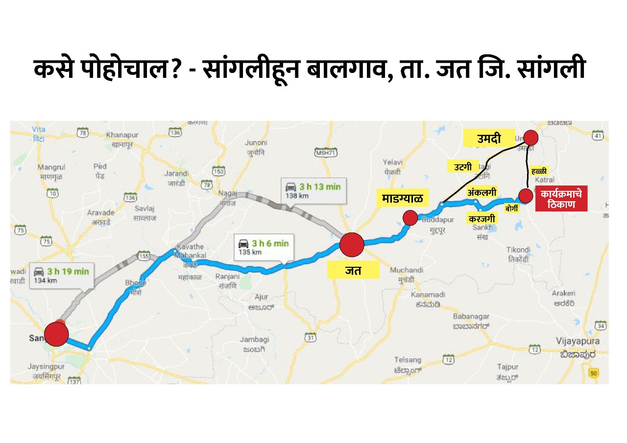 जत,प्रतिनिधी: बालगाव ता.जत येथील ग्रामीण ऐतिहासिक योग-उत्सवाची निमित्त आयोजित एक लाख लोंकाच्या उपस्थितीत होणाऱ्या सुर्यनमस्कार कार्यक्रमासाठी उपस्थित राहण्यासाठी वेगवेगळ्या ठिकाणाहून कार्यक्रमस्थळी पोहचण्यासाठी रोडमॅप तयार केला आहे. तो पुर्ण स्वरूपात राहण्यासाठी खालील छायाचित्रे पहा.