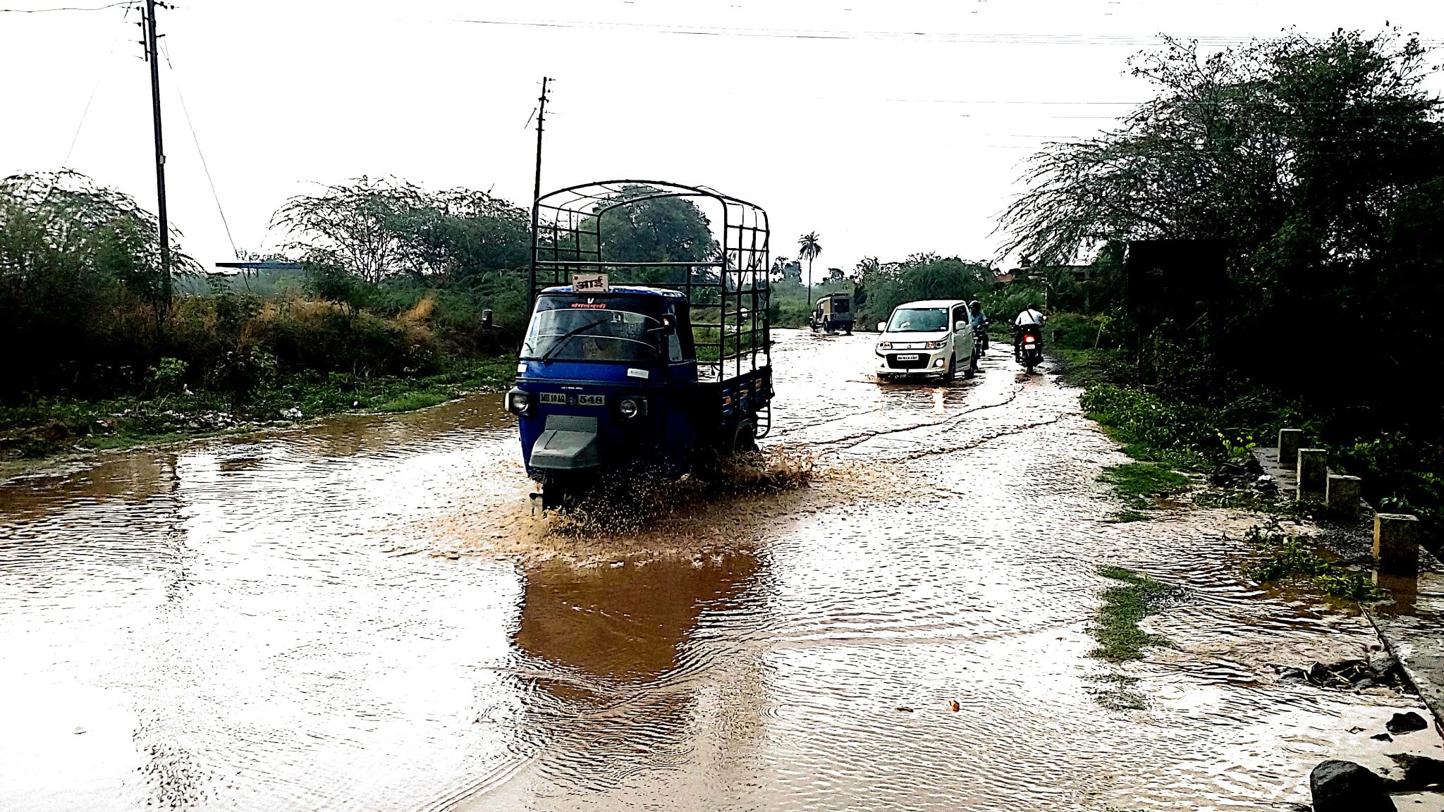 - रस्त्यावर पाणी आल्याने अपघातप्रणव क्षेत्रे बनली.