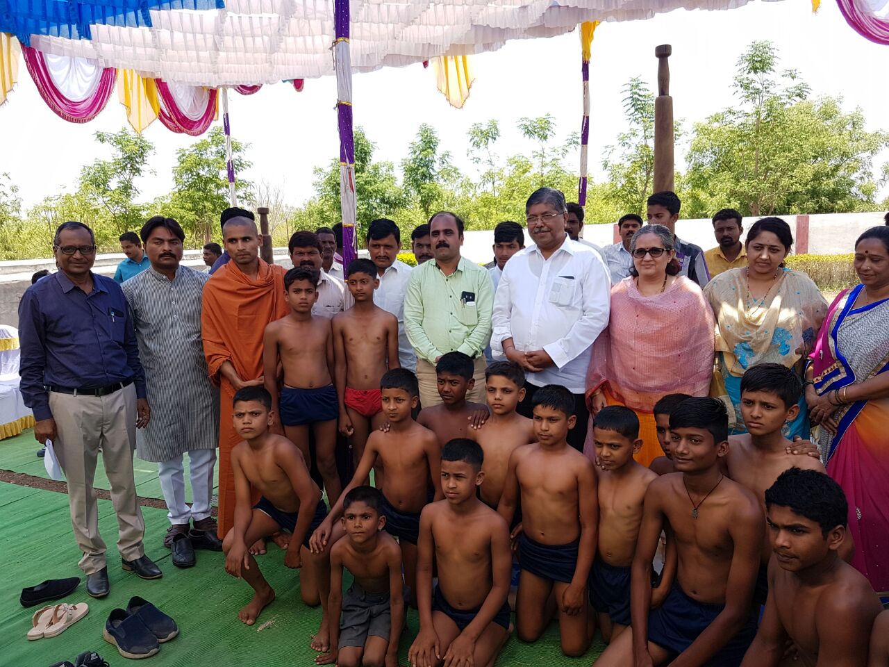 उमदी : बालगाव ता.जत येथील गुरूदेव आश्रमास सहकार मंत्री चंद्रकांत पाटील यांनी सह कुंटूब भेट दिली.यावेळी आश्रमाच्या मुलांनी मलखांबच्या नेत्रदिपक कसरती करून मंत्रीमहोदयाच्या मनोरंजन केले.त्यांच्यासोबत आत्मुतानंद महाराज,शिक्षण सभापती तम्मानगौंडा रवीपाटील,उमदीचे भाजप नेते संजय तेली आ