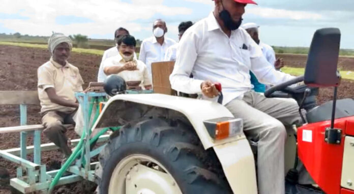 आमदार विक्रमसिंह सांवत यांनी थेट पेरणी यंत्रणाचा ताबा घेत पेरणी केली.