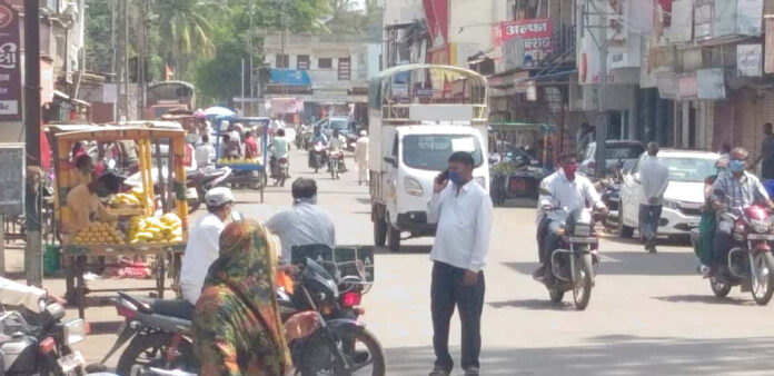 144 कलम लागू असतानाही शहरातील प्रमुख बाजारपेठेत मोठ्या प्रमाणात दुचाकी,चारचाकी वाहने फिरताना दिसत आहेत.निर्बंध असतानाही गुर्दी दिसत आहे.