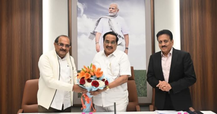 राज्यातील नदीजोड प्रकल्पांच्या पूर्णत्वासाठी केंद्र सरकारने भरीव अर्थसहाय्य करावे, अशी ठाम मागणी राज्य शासनाच्या वतीने केंद्रीय जलशक्ती मंत्री सी.आर.पाटील यांच्याकडे करण्यात आली. यासंदर्भात नवी दिल्लीत केंद्रीय मंत्री पाटील यांच्या उपस्थितीत राज्यातील सिंचन प्रकल्पांचा आढावा घेण्यासाठी विशेष बैठक पार पडली.