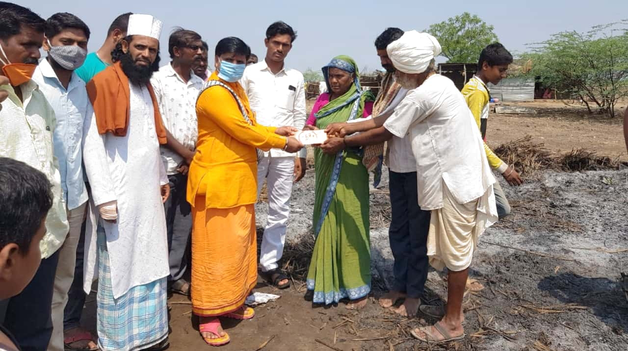 आसंगी तुर्कमधिल जळीतग्रस्त कुंटुबियांना मानव मित्र संघटनेकडून तातडीने मदत देण्यात आली.