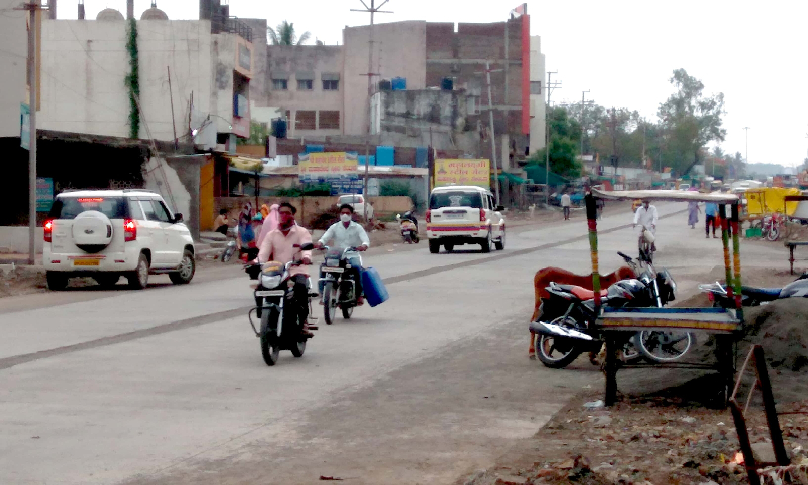 जत शहरात मंगळवारी नागरिकांचा रस्त्यावर असा वावर होता.