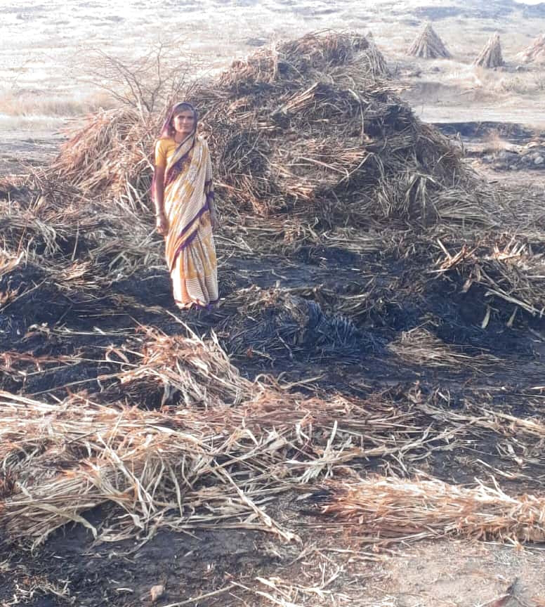 कोडग कुंटुबिय ज्वारीची मळणी करत असताना मशीनच्या इंजिनमधून ठिणगी जवळ असणाऱ्या कडब्यावर पडली.कडबा वाळलेला असल्याने आग लागली बघताबघता सर्व कबडा जळून खाक झाला.तलाठी भोसले यांनी पंचनामा केला आहे.