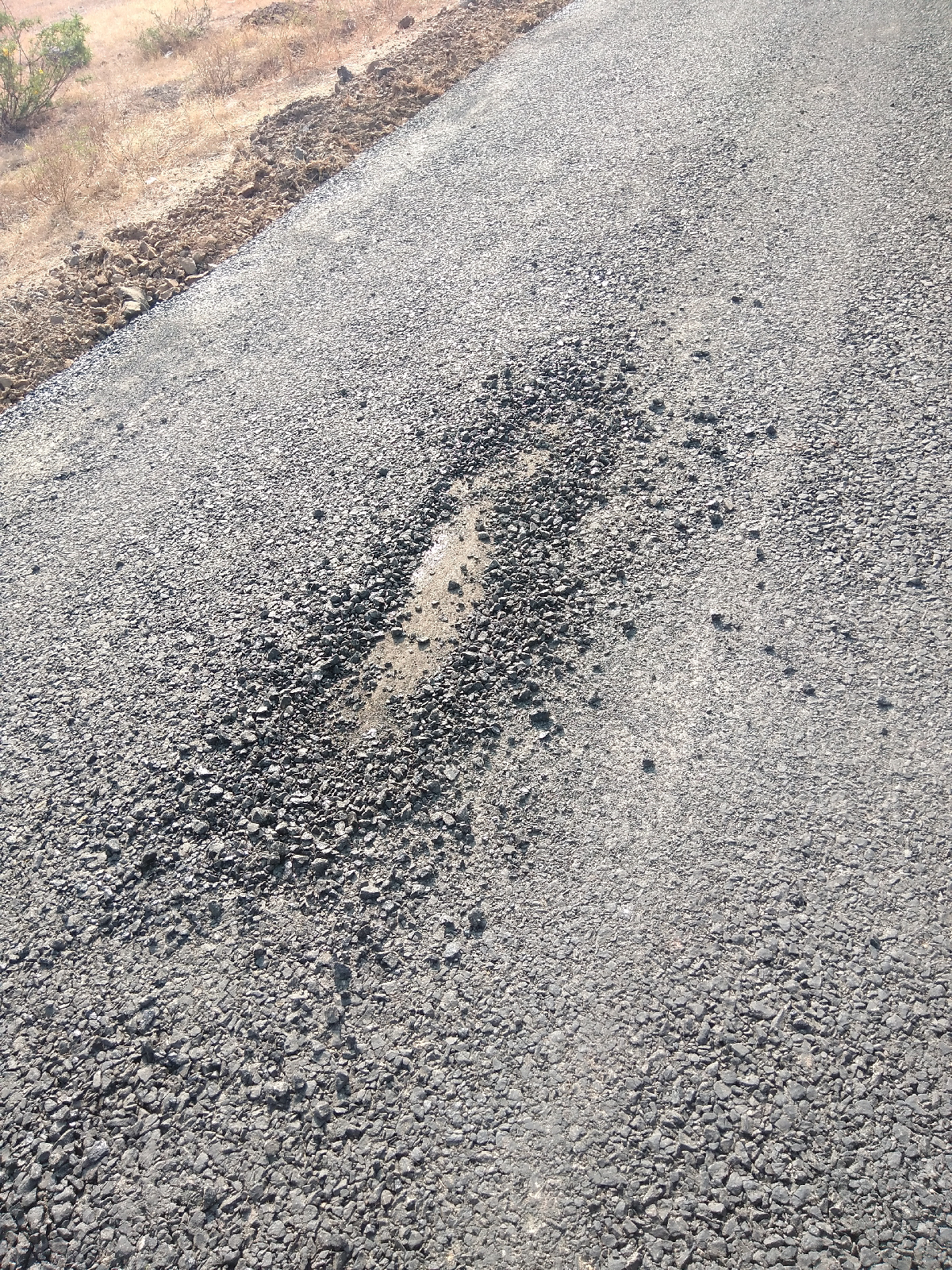 डांबरीकरणानंतर काही तासात काळे आईल टाकून टाकलेली छोटी खड्डी उखडत आहे.रस्ते कामातील भ्रष्ट कारभार चव्हाट्यावर येत असतानाही तालुक्यातील लोकप्रतिनिधीची चुप्पी अनेक प्रश्न उपस्थित करत आहे.