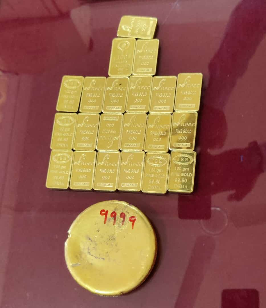 संशयिताकडे प्रत्येकी 100 ग्रँम सोन्याची21 बिस्किटे,त्यांची किंमत सुमारे 1 कोटी 25 लाख,तसेच दोन किलो430 ग्रँस वजन असलेले तेजाब गाळलेले सोने,त्यांची किंमत सुमारे 1कोटी 21 लाखाचे सोने,ओमणी गाडी एक लाख रुपये,एक पिस्टल सारखे दिसणारे लाईटर,तीन वेगवेगळे कंपनीचे मोबाईल त्यांची किंमत 17 हजार,असा 2 कोटी,27 लाख,22 हजार,880 रूपयाचा मुद्देमाल जप्त केला आहे. या कारवाईत अप्पर अधिक्षक मनिषा दुबुले,पोलीस उपअधिक्षक रत्नाकर नवले,पोलिस निरिक्षक उत्तम जाधव यांच्यासह सहा.पोलीस निरीक्षक रविराज फडणीस, पोलीस उपनिरीक्षक अभिजीत सावंत, पोलीस उपनिरीक्षक दिलीप ढेरे यांच्या पथकाने ही कारवाई केली.