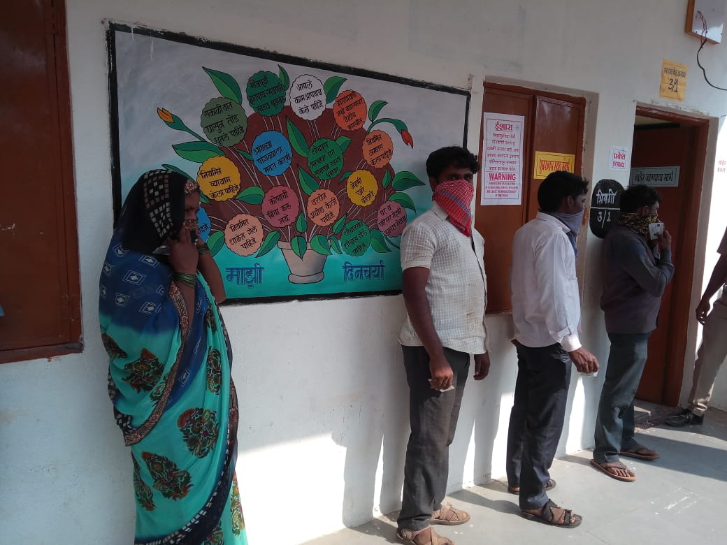 भिवर्गी ता.जत येथे मास्क वापरत सुरक्षित अंतर ठेवण्यात मतदान प्रक्रिया पार पाडण्यात आली.