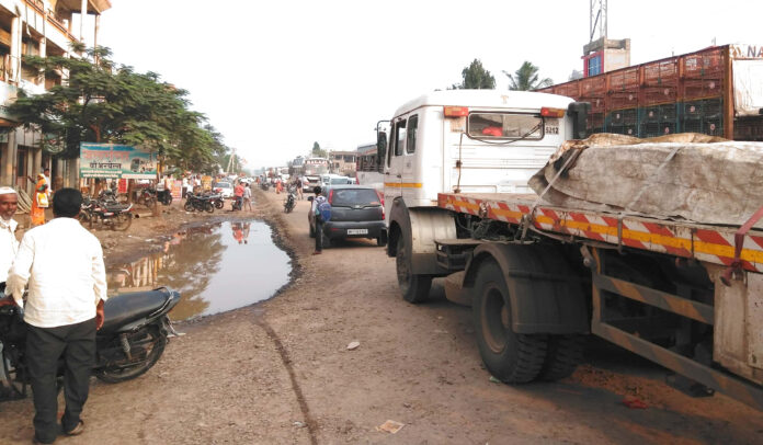 जत शहरातील शेगाव ते चडचण येथे पर्यतच्या मार्गाचे काम सुरू आहे.त्यापैंकी शेगाव चौक ते निगडी कॉर्नरपर्यतचे दोन्ही बाजूचे सीमेंट कॉक्रीटकरण पुर्ण करण्यात आले आहे.गटारीही पुर्ण होत आल्या आहेत.मात्र गटारीपर्यत रस्ता भरण्यात आलेला नाही.तेथून पुढे एसटी स्टँडपर्यतचे मजबूतीकरणासाठी रस्ता खोदण्यात आला आहे. तर तेथून पुढे चडचडण कॉर्नर पर्यतचे एका बाजूचे काम पुर्ण करण्यात आले आहे. तर त्याच बाजूच्या गटारीचे काम सुरू आहे.त्यामुळे एकेरी मार्ग सुरू आहे.त्याच मार्गावर दुचाकी,चार चाकी गाड्या उभ्या केल्या जात असल्याने अवजड वाहने सातत्याने अडकून प्रत्येक पंधरा मिनीटाला वाहतूक कोंडी होत.यात कुणाचा जीव कधी जाईल हे सांगता येत नाही.