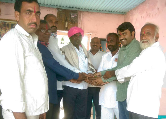 संजय गांधी निराधार योजनेच्या सदस्यपदी निवड झाल्याबद्दल रामचंद्र पाटील यांचा सत्कार करताना महादेव पाटील,अभिजीत चव्हाण, दिग्विजय चव्हाण